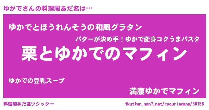 | 意味不明あだ名 | 『めかぶ科ゆかで属』『永久保存ゆかで』 |