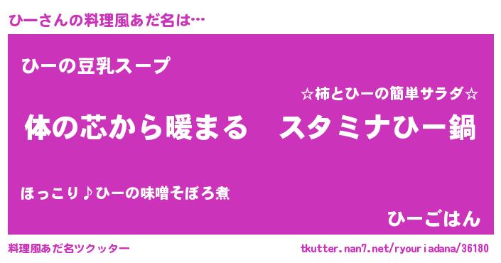 | 女子向けラノベタイトル風あだ名 | 『ひーの雑貨屋さん』『ひーは平凡を望む』 |