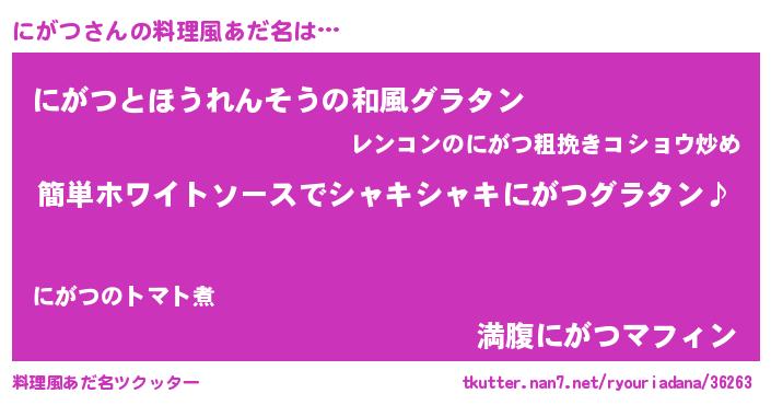 ポケモン風あだ名 | 『ヒニガツ』『ニガキング』 |