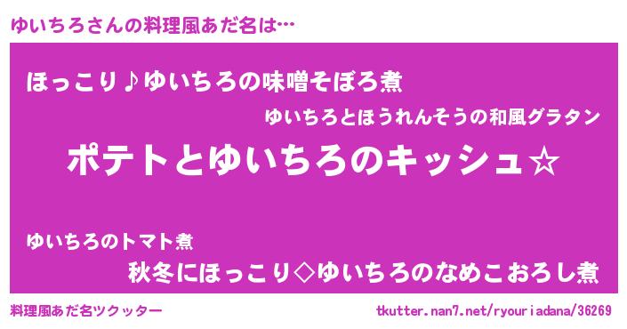 | 男性向けラノベタイトル風あだ名 | 『ゆいちろの嫁は女の子じゃないと思った?』 |