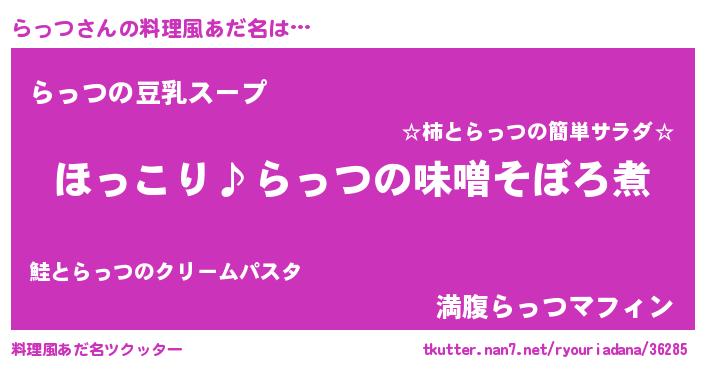 | 意味不明あだ名 | 『ペロリンらっつ』『永久保存らっつ』 |