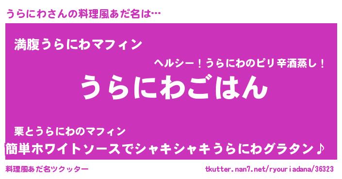 | 意味不明あだ名 | 『たけのこ科うらにわ属』『自称うらにわ』 |
