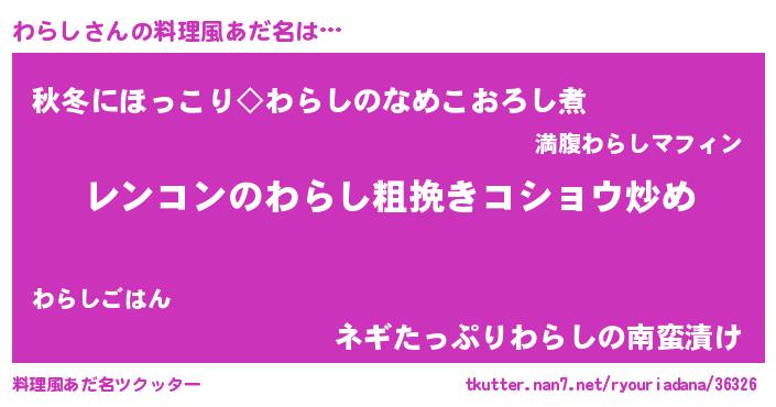 | 意味不明あだ名 | 『自称わらし』『ペロリンわらし』 |