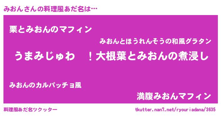 | ファンタジー風あだ名 | 『エターナルミオンー』『ミオディッシュ』 |