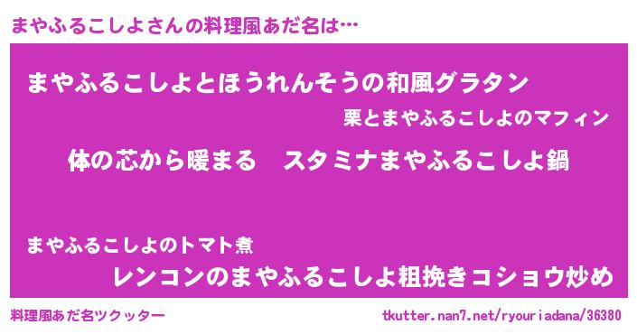 | 意味不明あだ名 | 『まやふるこしよフォーエバー』 |