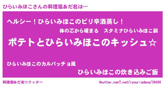 | ポケモン風あだ名 | 『ヒヒライミホコ』『ヒラセウス』 |