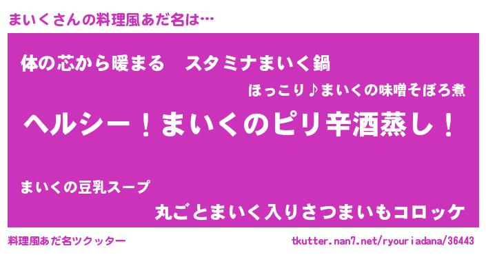 | 男性向けラノベタイトル風あだ名 | 『Re:まいくから始める異世界生活』 |