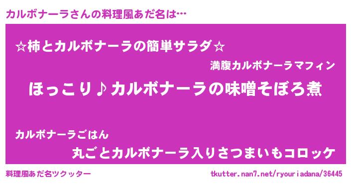 | 男性向けラノベタイトル風あだ名 | 『カルボナーラの憂鬱』 |