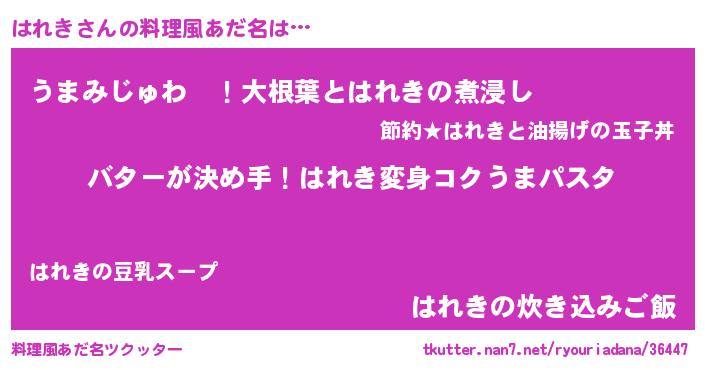 | ポケモン風あだ名 | 『ハックウザ』『ハレキダネ』 |