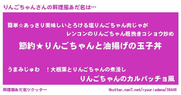 | 男性向けラノベタイトル風あだ名 | 『リンゴチャンアートオンライン』 |
