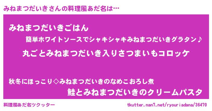 | ヘコむあだ名 | 『みねっちょ』『みねまつだいき(爆)』 |
