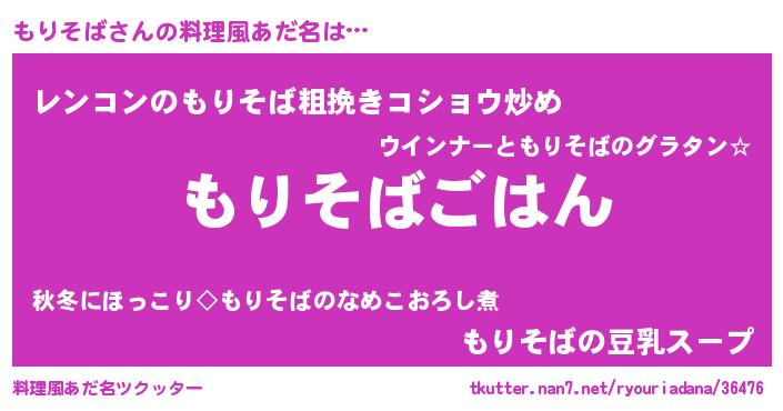 | 男性向けラノベタイトル風あだ名 | 『モリソバスレイヤー』 |