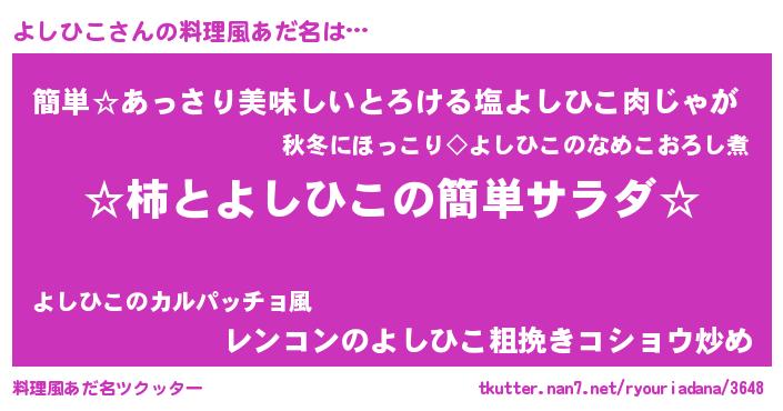| 胡散臭い通販商品みたいなあだ名 | 『来世でも幸せになれる健康食品…その名も「よしひこ」』 |