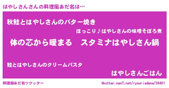 | ヘコむあだ名 | 『つくし』『はやしさん(爆)』 |
