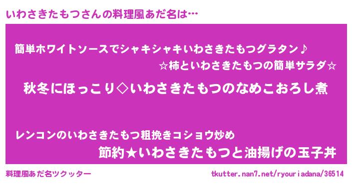 | 男性向けラノベタイトル風あだ名 | 『いわさきたもつに滅ぼされるだけの簡単なお仕事です』 |
