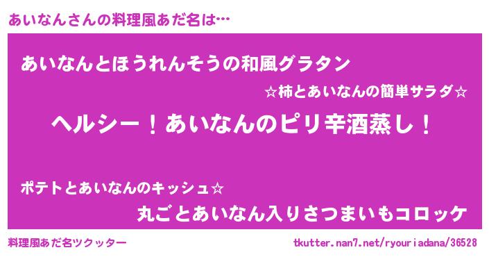 | 胡散臭い通販商品みたいなあだ名 | 『芸能人もオススメする高麗人参…その名も「あいなん」』 |