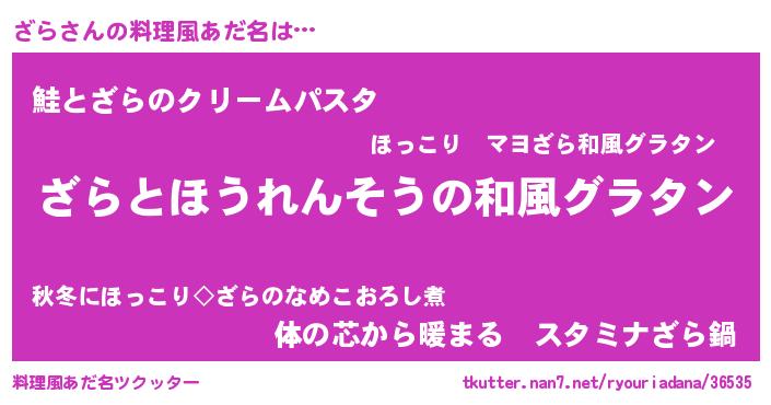 | 自動車の名前っぽいあだ名 | 『ザールスライス』『ザンR』『ザクア』 |
