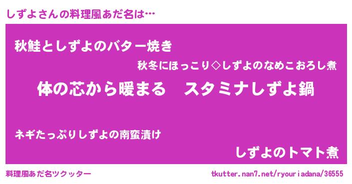 | ヘコむあだ名 | 『つくし』『しずよ(笑)』『しずお』 |
