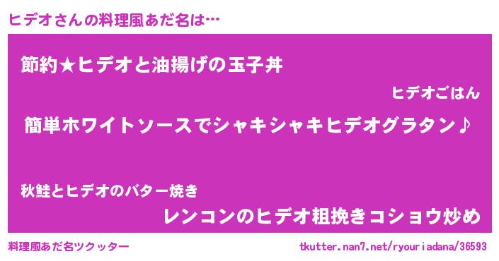 | 男性向けラノベタイトル風あだ名 | 『ヒデオの嫁は女の子じゃないと思った?』 |