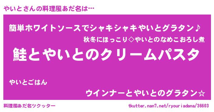 | 女子向けラノベタイトル風あだ名 | 『死神やいとの再婚』『やいと様がみてる』 |