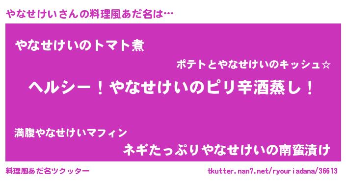 | 男性向けラノベタイトル風あだ名 | 『Re:やなせけいから始める異世界生活』 |