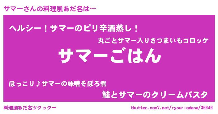 | 男性向けラノベタイトル風あだ名 | 『サマースレイヤー』『魔弾の王とサマー』 |