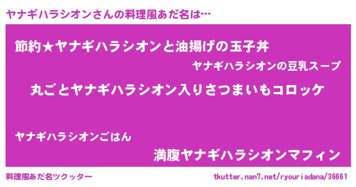 | 女子向けラノベタイトル風あだ名 | 『乙女ゲームの破滅フラグしかない悪役ヤナギハラシオンに転生してしまった…』 |
