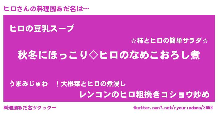 | ヒーロー風カッコイイあだ名 | 『銀牙騎士ヒロ』『超時空戦士ヒロ』 |