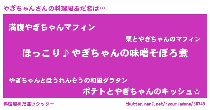 | ヘコむあだ名 | 『やぎにゅー』『やぎちゃん(小並感)』 |