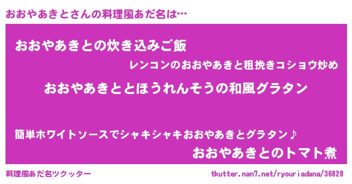 | 男性向けラノベタイトル風あだ名 | 『おおやあきと~年齢イコール彼女いない歴の魔法使い~』 |
