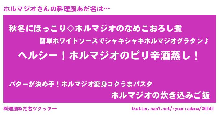 | 男性向けラノベタイトル風あだ名 | 『Re:ホルマジオから始める異世界生活』 |