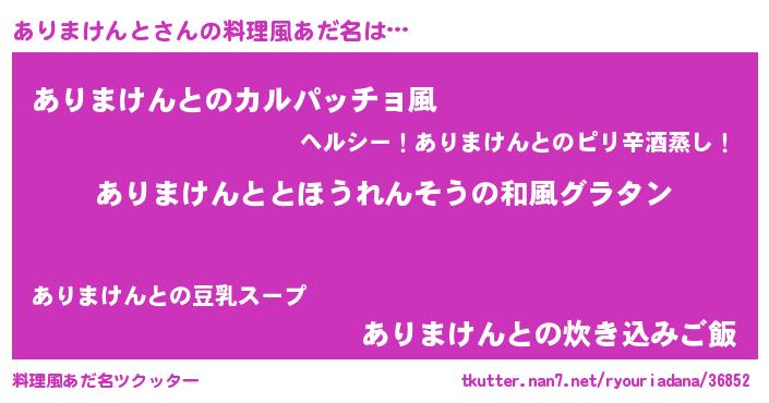 | 女子向けラノベタイトル風あだ名 | 『ありまけんとの玉の輿計画!』 |