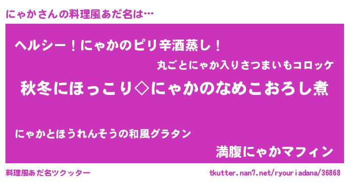 | 男性向けラノベタイトル風あだ名 | 『にゃかに滅ぼされるだけの簡単なお仕事です』 |