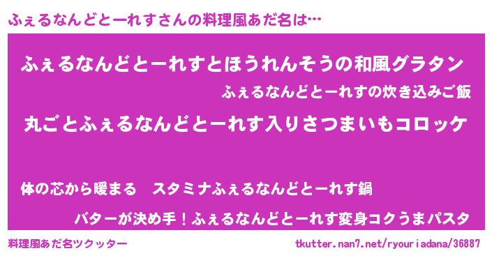 | 女子向けラノベタイトル風あだ名 | 『乙女ゲームの破滅フラグしかない悪役ふぇるなんどとーれすに転生してしまった…』 |