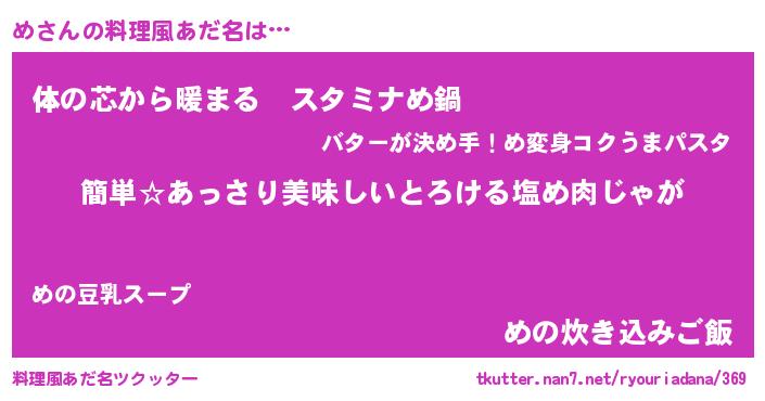| ピコ太郎風あだ名 | 『ピコメ郎』『ピメ二郎』『メメ太郎』 |