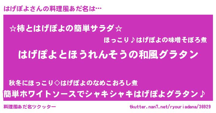 | 意味不明あだ名 | 『もやし科はげぽよ属』『自称はげぽよ』 |