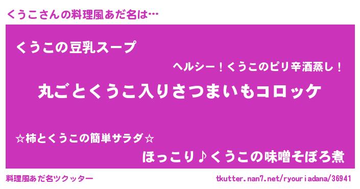 | 男性向けラノベタイトル風あだ名 | 『魔弾の王とくうこ』『くうこの憂鬱』 |