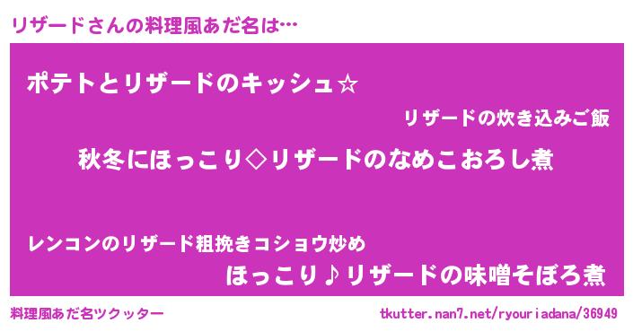 | 男性向けラノベタイトル風あだ名 | 『リザードに滅ぼされるだけの簡単なお仕事です』 |