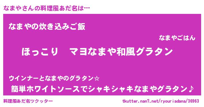 | 欧米人風あだ名 | 『ダレノガレなまや』『ウサインなまや』 |