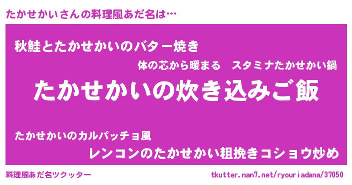 | ヘコむあだ名 | 『たかせかい(笑)』『豆乳』 |