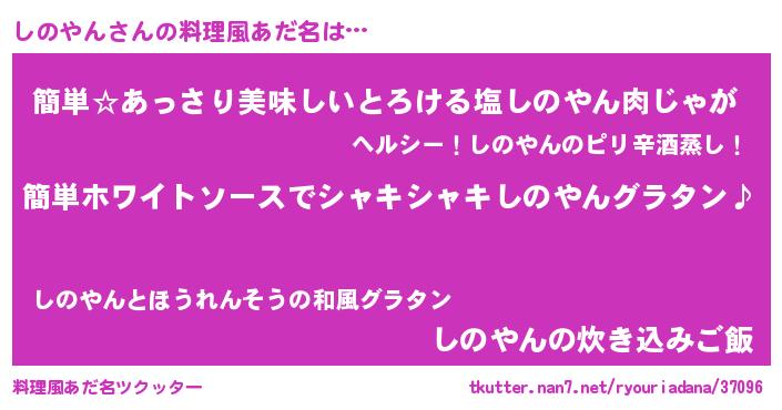 | 女子向けラノベタイトル風あだ名 | 『しのやん様がみてる』『闇のしのやん』 |