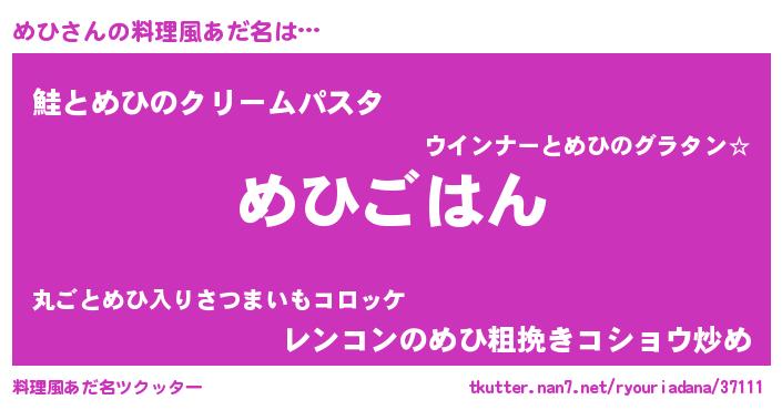 | 意味不明あだ名 | 『めかぶ科めひ属』『自称めひ』 |