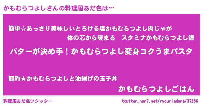 | ヘコむあだ名 | 『かもむらつよし(笑)』『酢こんぶ』 |
