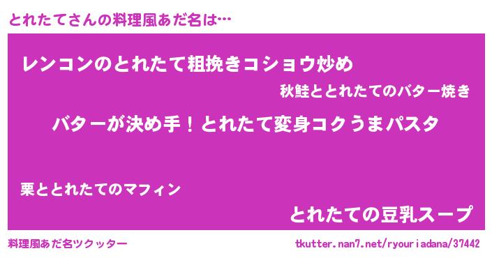 | 女子向けラノベタイトル風あだ名 | 『とれたて恋絵巻』『とれたての契約王妃』 |