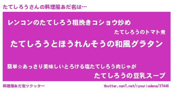| 男性向けラノベタイトル風あだ名 | 『たてしろう~年齢イコール彼女いない歴の魔法使い~』 |