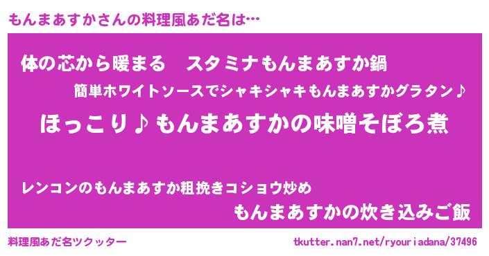 | 男性向けラノベタイトル風あだ名 | 『もんまあすかの憂鬱』 |