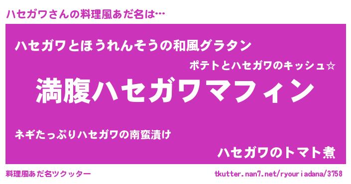 | 男性向けラノベタイトル風あだ名 | 『ハセガワという概念が存在しない退屈な世界 』 |