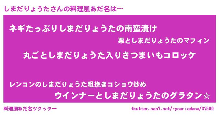 | 意味不明あだ名 | 『住所不定無職しまだりょうた(39歳)』 |