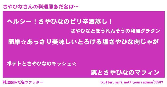 | ヘコむあだ名 | 『さやひな(震え声)』『さや太郎』 |