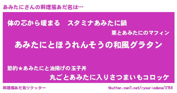 | 意味不明あだ名 | 『もやし科あみたに属』『自称あみたに』 |